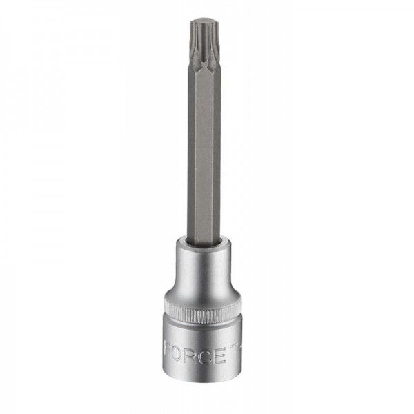 Головка-бита торкс Force предназначена для работы с крепежом с шестигранным пазом типа TORX. Изделие оснащено посадочным квадратом 1/2", что обеспечивает совместимость со стандартными динамометрическими и рычажными ключами. Длина биты составляет 100 мм, размер TORX — T100.