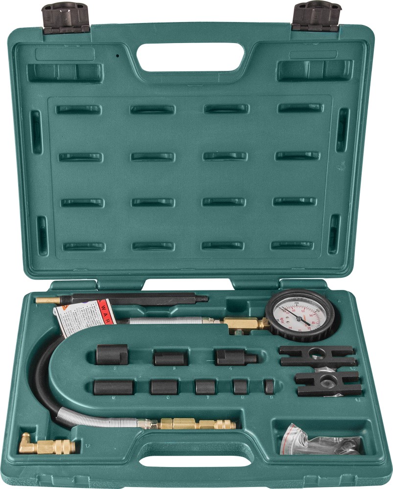 Компрессометр применяется для контроля состояния деталей цилиндро-поршневой группы и ГРМ дизельных двигателей грузовых автомобилей. Прибор комплектуется большим 100 мм манометром в ударопрочном, обрезиненном корпусе. Манометр рассчитан на измерение давления в диапазоне 0 – 60 кгс/см².