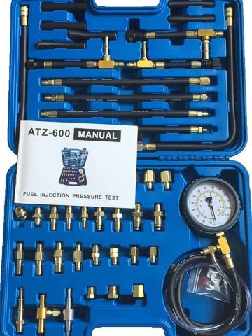 Тестер давления топлива ATZ-600 с перепускным клапаном, позволяющим сбрасывать остаточное давление. Используется для измерения давления топлива в магистралях инжекторных двигателей, Isuzu, Volvo, American Motors, Ford, Chrysler, GM, ВАЗ, ГАЗ и других, оборудованных системами впрыска: Bosch CIS, AFC, MPC, LH-Jetronic, I-Tec Systems, EFI, CFI, GM TBI и другими. Благодаря наличию большого количества переходников и адаптеров возможна проверка работоспособности топливного насоса, фильтра, регулятора давления, дозатора топлива и др. более чем в 700 различных автомобилях европейского, японского, корейского, американского и российского производства, оснащенных топливными системами моновпрыска, механического и электронного впрысков. С помощью набора можно проводить измерения, подключившись к порту Шредера, мини-порту Шредера а так-же через форсунки, имеющие соединения типа Bendix, врезавшись в топливную магистраль, используя тройник или сборный адаптер со шлангами и фитингами, или один из предназначенных для определённой марки автомобиля адаптеров. В отличие от набора TU-443 (HS-1011) содержит в комплекте быстросъемы не только диаметром 8 мм, но и 6 и 10 мм (в верхней части крышки тестера). Также наличие адаптеров с резьбами M10х1, 1/8-NPT. 1/4-NPT и 3/8-NPT позволяет производить замеры давления масла на всех двигателях российского и импортного производства!!! Предел измерения манометра от 0 до 10 bar.