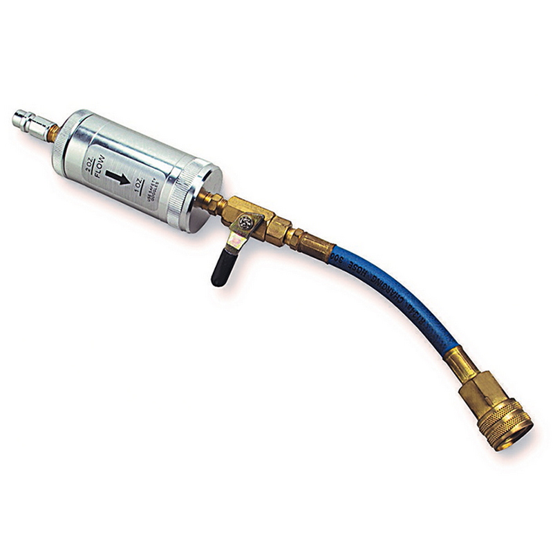 Цилиндр подсоединяется в магистраль между баллоном с фреоном и манометрическим коллектором. Необходимое количество масла заправляется вместе с потоком хладагента.