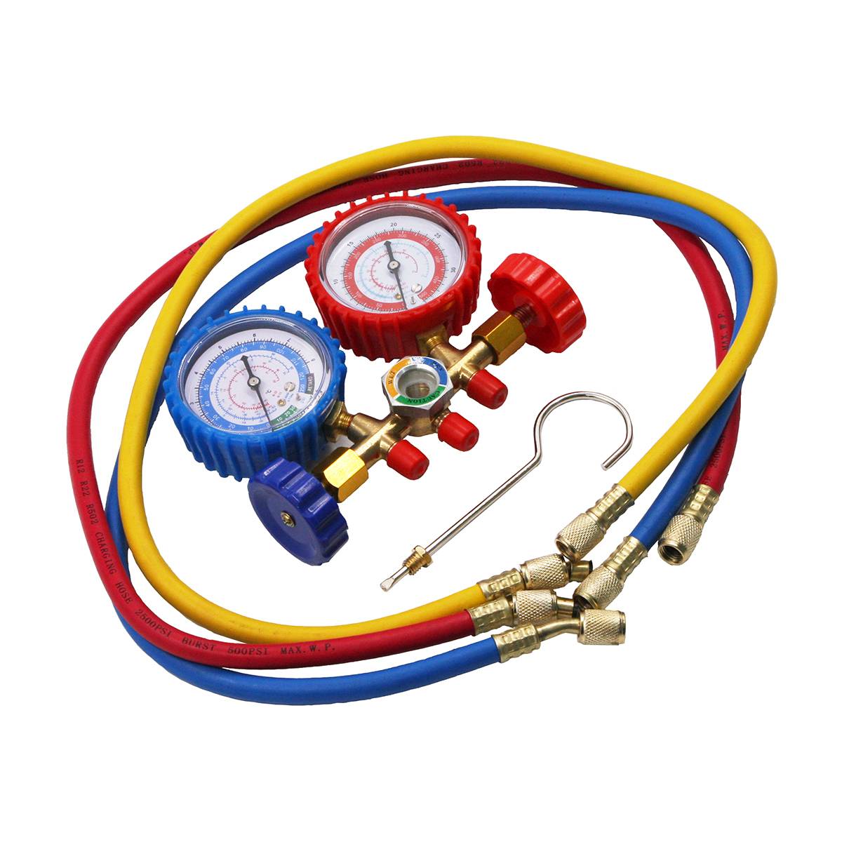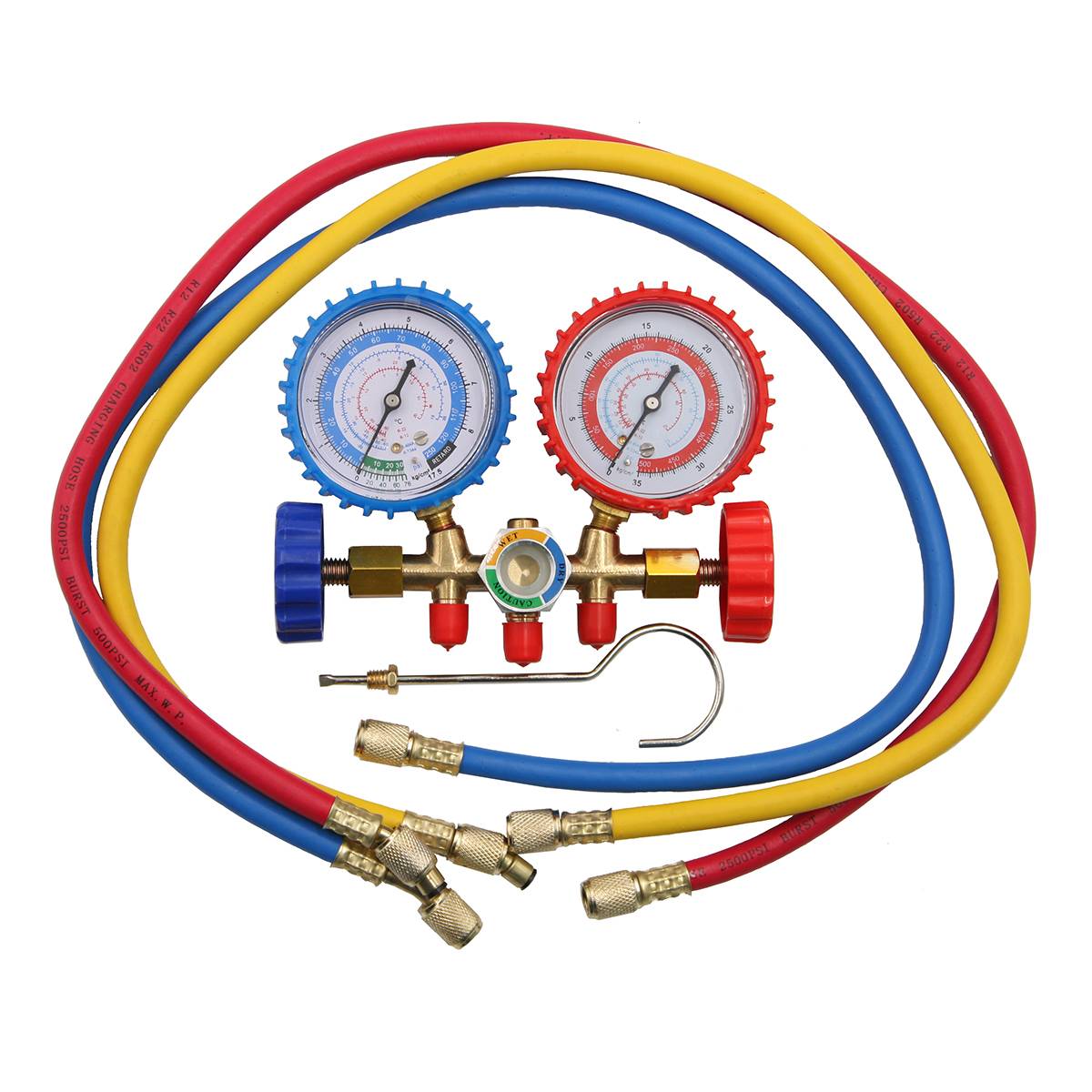 Коллектор манометрический R-134a, R-12, R-22 комплектуется шлангами и предназначен для заправки, диагностики систем кондиционирования воздуха хладагентом R134A, R-12, R-22.