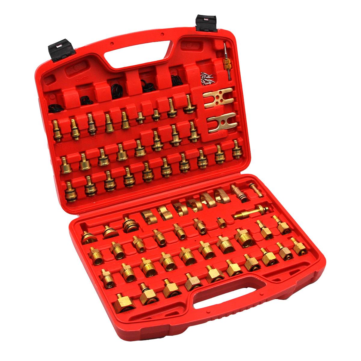 Комплект адаптеров для тестирования системы кондиционирования азиатских автомобилей предназначен для проверки расширительного клапана, осушителя, компрессора, конденсатора и испарителя.