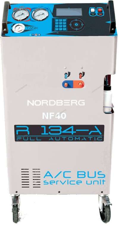 Автоматическая установка NORDBERG NF40 предназначена для восстановления, вакуумирования и зарядки кондиционеров автобусов.