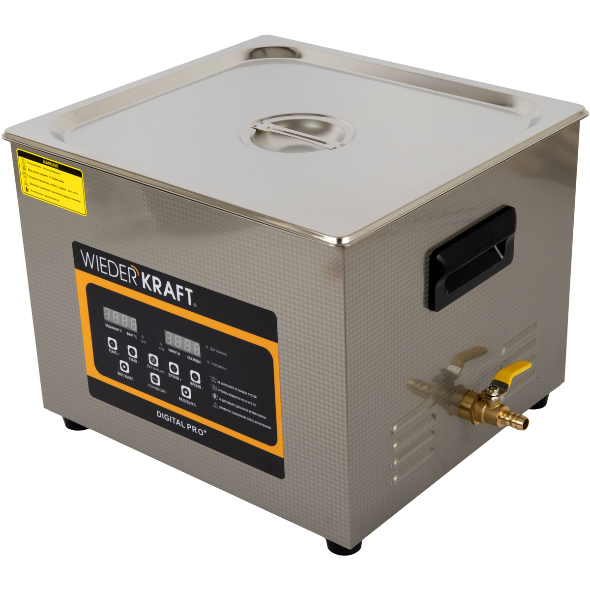 Модель оснащена подогревом до 80°C, что значительно повышает эффективность при удалении жировых и масляных загрязнений. Функция дегазации и режим полуволны обеспечивают стабильность кавитации и позволяют очищать как массивные детали, так и деликатные изделия. А удобная цифровая панель управления даёт возможность точно настроить время (от 0 секунд до 30 минут) и температуру нагрева.