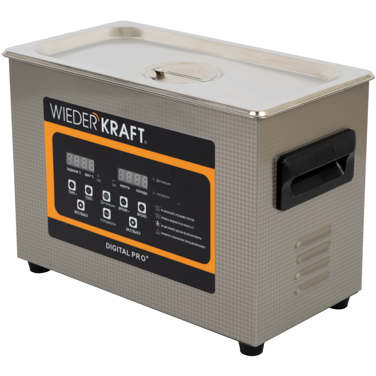 Модель оснащена подогревом до 80°C, что значительно повышает эффективность при удалении жировых и масляных загрязнений. Функция дегазации и режим полуволны обеспечивают стабильность кавитации и позволяют очищать как массивные детали, так и деликатные изделия. А удобная цифровая панель управления даёт возможность точно настроить время (от 0 секунд до 30 минут) и температуру нагрева.