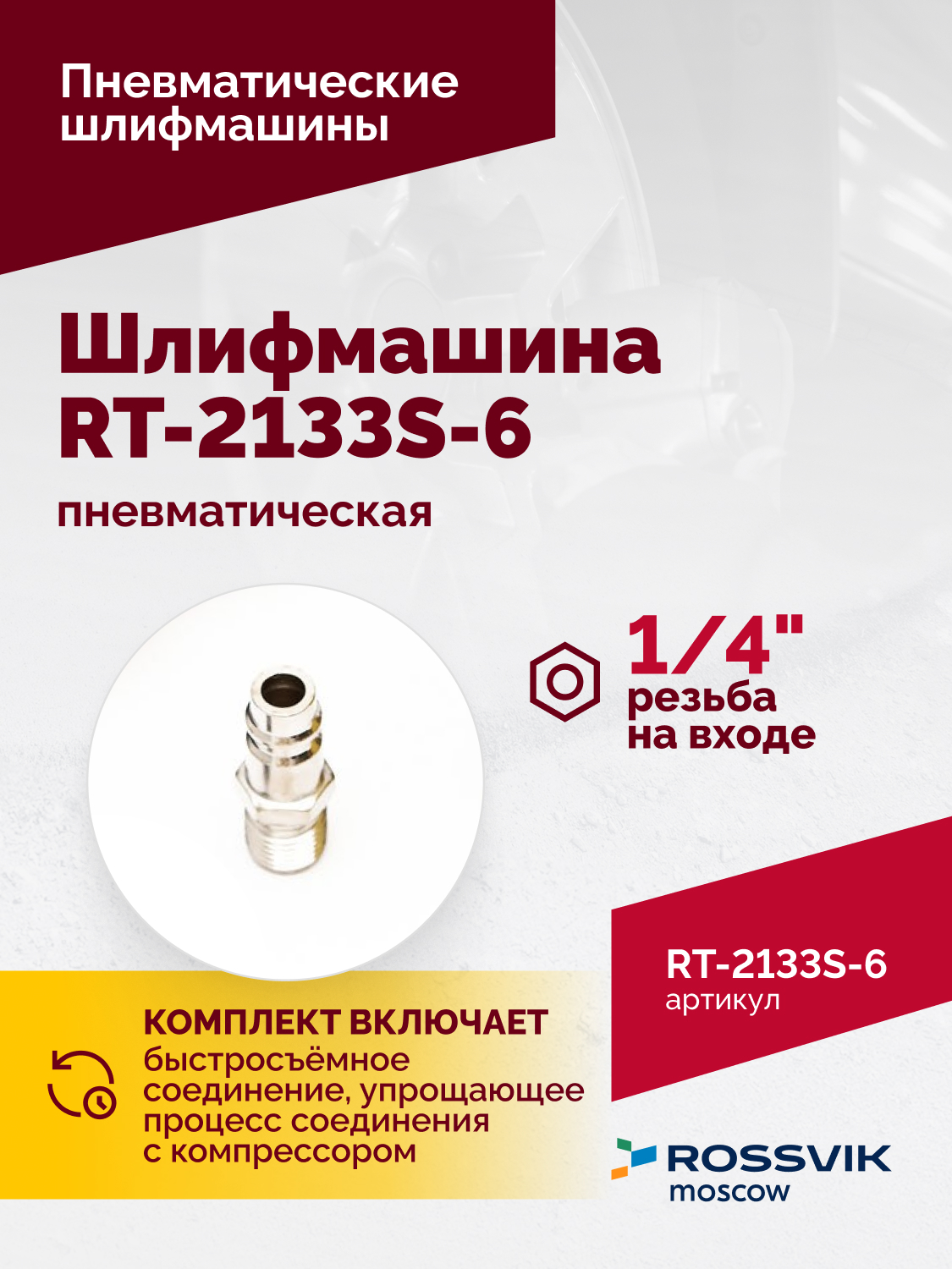 Шлифмашина полировальная пневматическая RT-2133S-6, 150мм, 10000об/мин, с отсосом используется для тонких шлифовальных работ, таких как шлифование грунтов, лакокрасочной поверхности под покраску, обработка поверхности перед полировкой. Широко применяется на станциях технического обслуживания и автомобильных сервисах. Поставляется в транспортировочной картонной коробке.