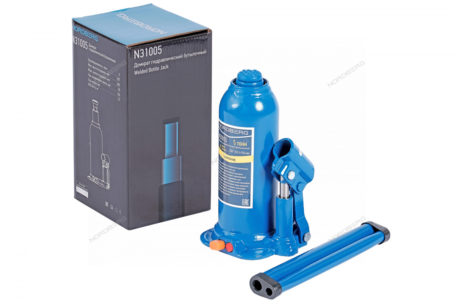 Бутылочный домкрат NORDBERG N31005 – высококачественное силовое оборудование для выполнения подъемных работ при диагностике и ремонте автомобиля в автосервисах, шиномонтажах и автотранспортных предприятиях.