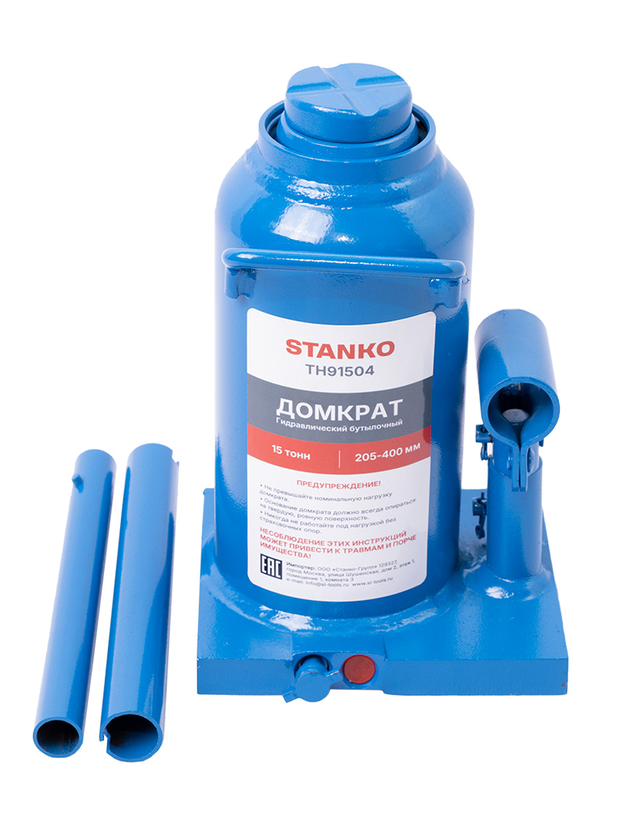 Домкрат бутылочный грузоподъемностью до 15 тонн используется при ремонте и техническом обслуживании транспортных средств, для поднятия тяжестей при строительстве или ремонтных работах.