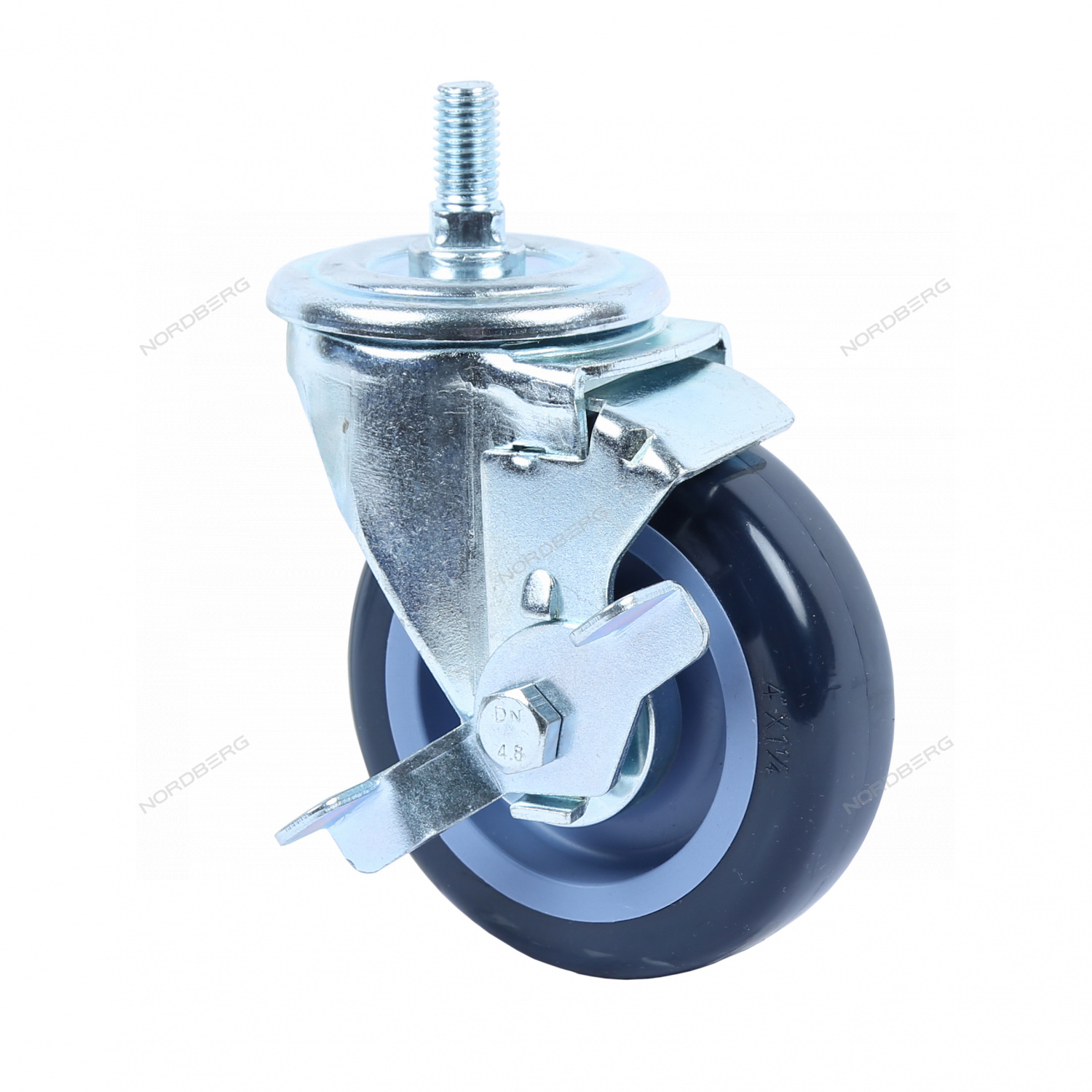 Колесо с тормозом для домкрата N3S4 от бренда Nordberg — запасная часть, предназначенная для использования с совместимыми моделями домкратов. Конструкция включает в себя колесо и встроенный тормозной механизм, обеспечивающий фиксацию при необходимости. Изделие разработано в соответствии с требованиями к надежности и функциональности оригинальных комплектующих.