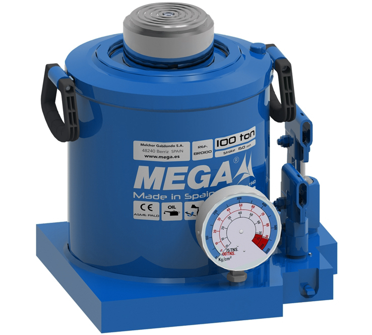 Домкрат бутылочный MEGA MGD100 предназначен для подъёма тяжёлых грузов и рассчитан на максимальную нагрузку до 100 000 кг. Изделие относится к категории бутылочных домкратов и выполнено под брендом MEGA.