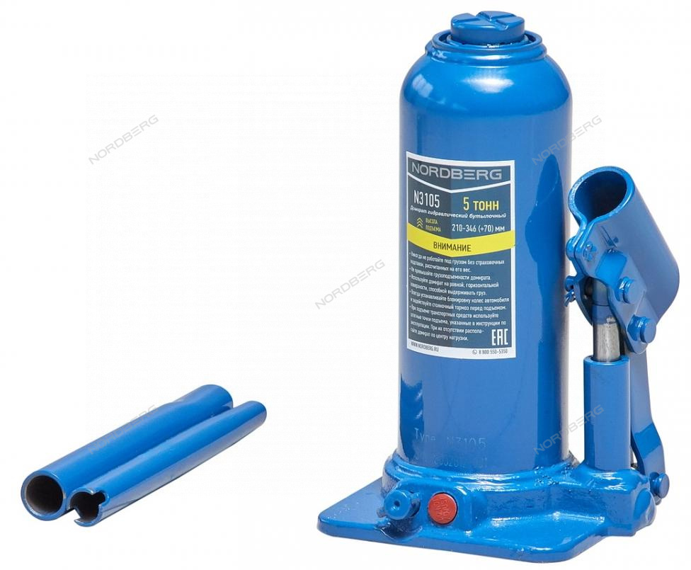 Бутылочный домкрат NORDBERG N3105 – высококачественное силовое оборудование для выполнения подъемных работ при диагностике и ремонте автомобиля в автосервисах, шиномонтажах и автотранспортных предприятиях.
