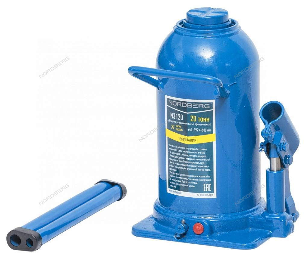 Бутылочный домкрат NORDBERG N3120 – высококачественное силовое оборудование для выполнения подъемных работ при диагностике и ремонте автомобиля в автосервисах, шиномонтажах и автотранспортных предприятиях.