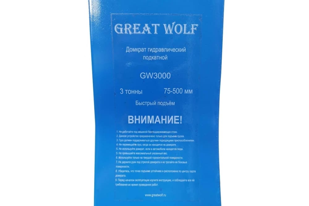 Низкопрофильный гидравлический подкатной домкрат Great Wolf 3 т, 75-500 мм GW-3000 используется для плавного поднятия груза, для шиномонтажа или выполнения работ по ремонту ходовой части.