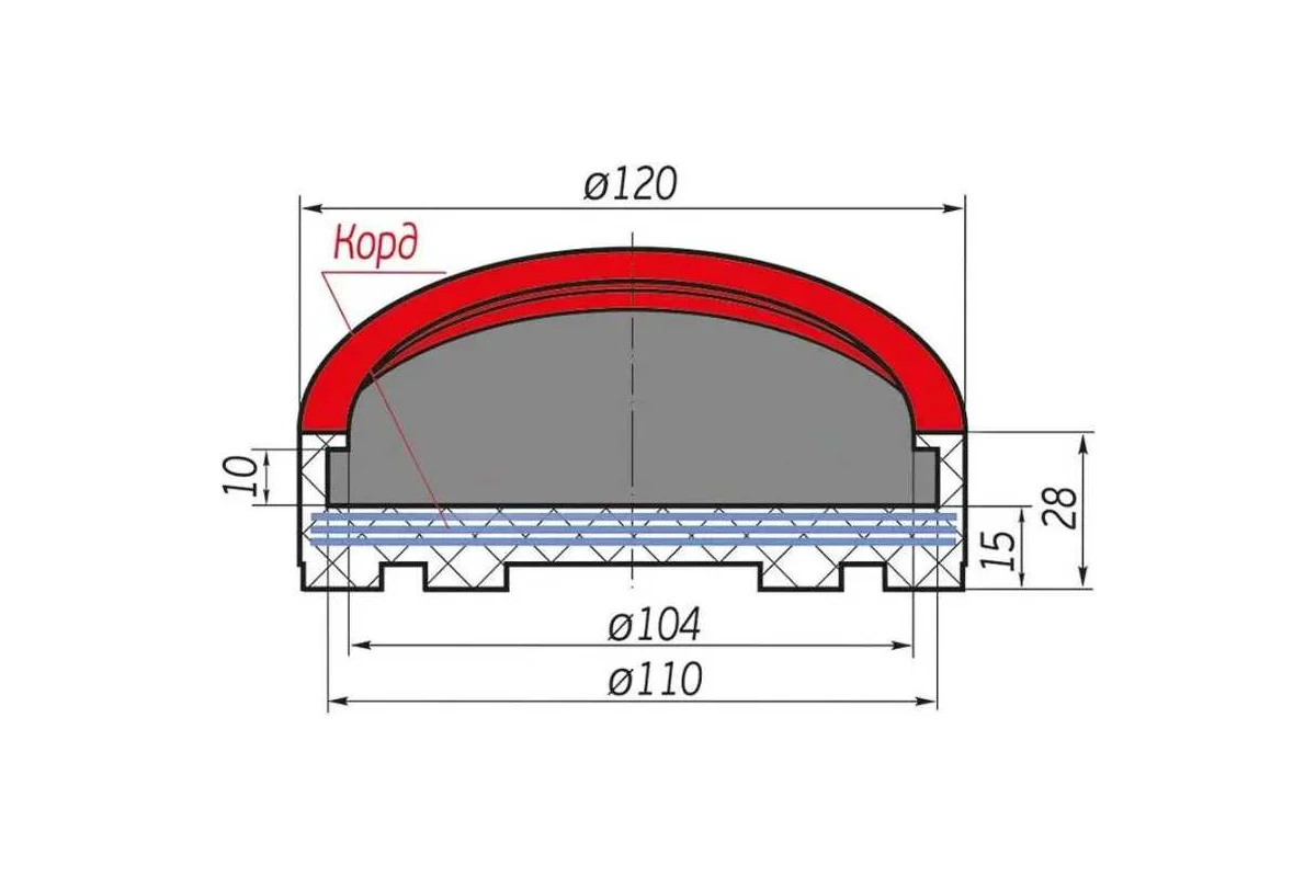 Кордированная резиновая накладка изготовлена из абсолютно нового состава резиновой смеси прошедшей испытания в течение 2011 года в сервисных центрах г. Москвы.