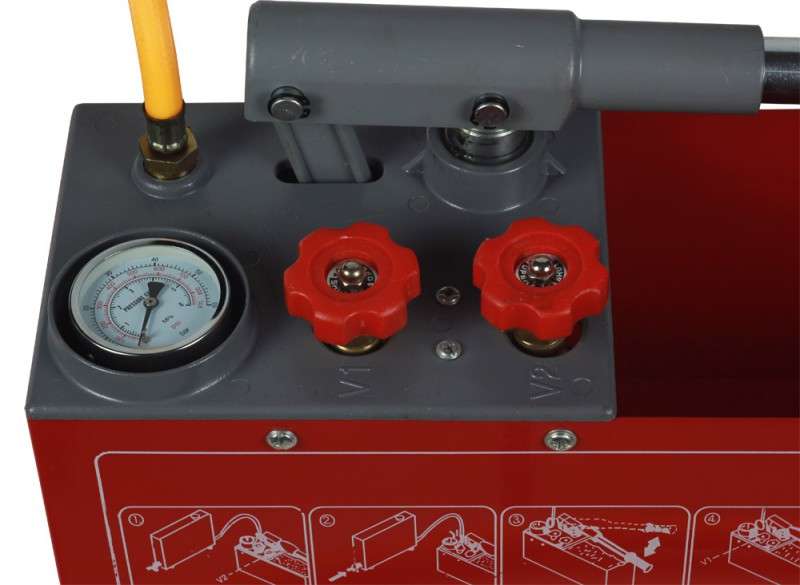 - основные элементы насоса для опрессовки систем отопления изготовлены из латуни, имеющей специальное антикоррозийное покрытие;