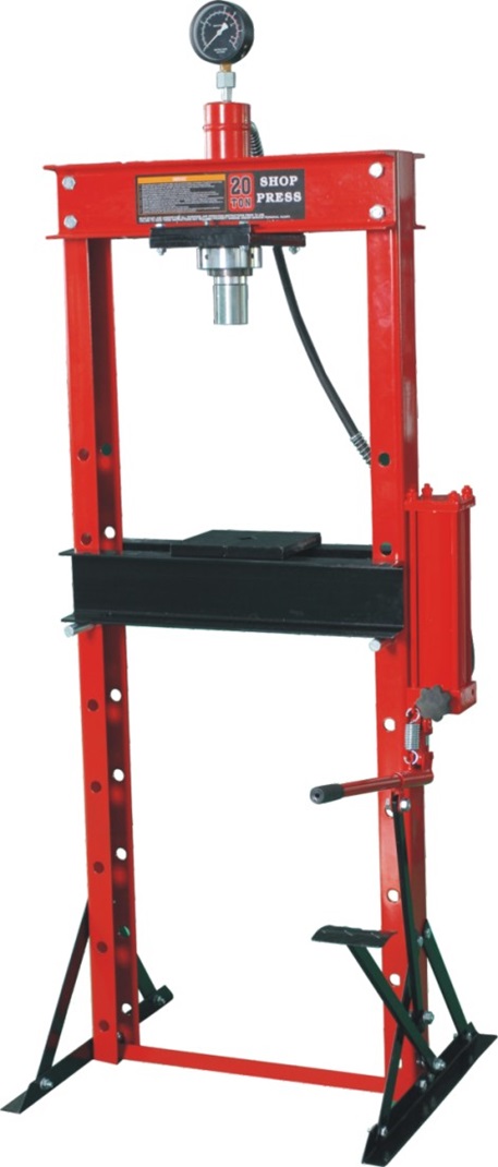 Пресс напольный гидравлический, с ножным приводом. Развиваемое усилие: 20,0 тн. Привод: ручной гидронасос. Ход штока: 154мм. Мин. рабочая дистанция: 0мм. Макс. рабочая дистанция: 1040мм.