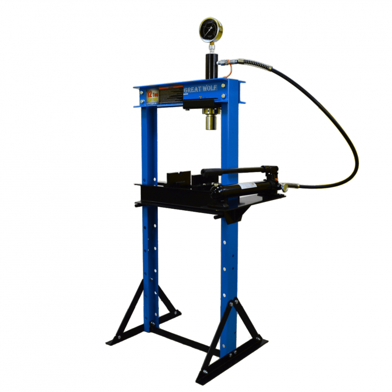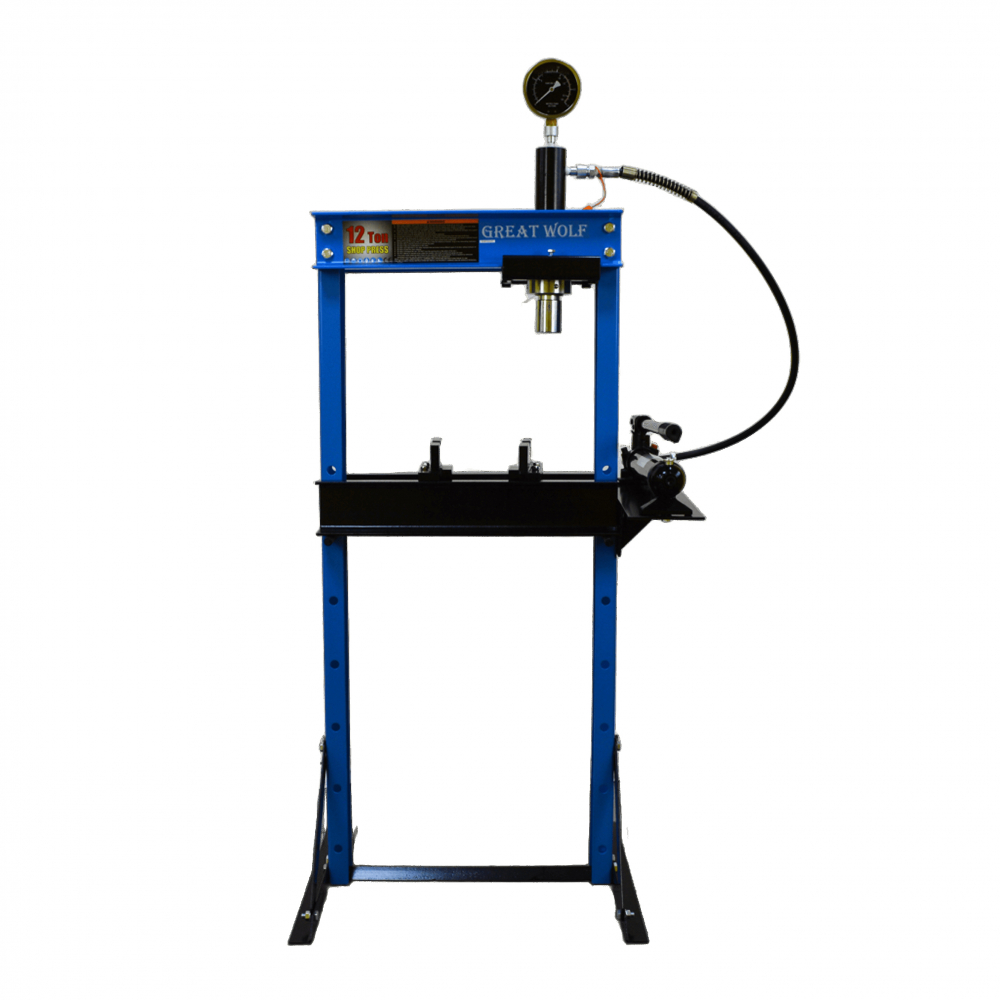 Гидравлический напольный пресс Great Wolf GW-0912 является высококачественным профессиональным, а также любительским оборудованием. Может применятся на производствах, станциях техобслуживания, мастерских. Компактные размеры позволяют использование в небольших помещениях. Максимальное усилие составляет 12т, ход штока 140мм, регулировка нижнего упора 0-75см. Манометр для контроля усилия. Надежная конструкция с порошковой покраской гарантирует долговечность изделия.