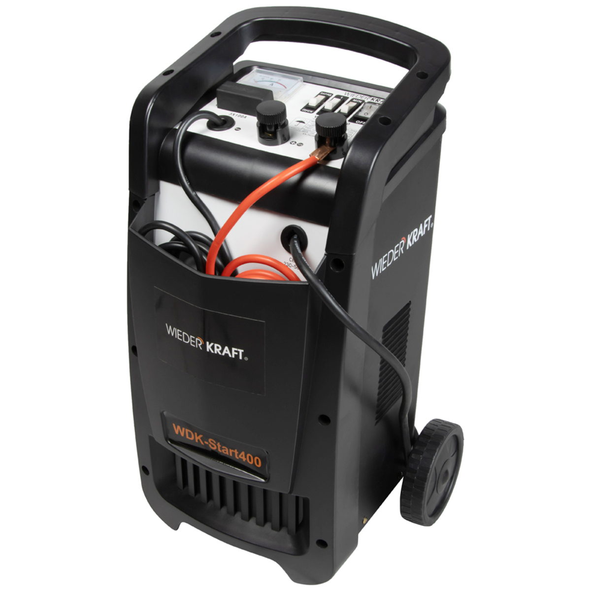 • Удобная рукоятка - использование рукоятки в верхней части корпуса делает перемещение WiederKraft WDK-Start400 более удобным и простым.