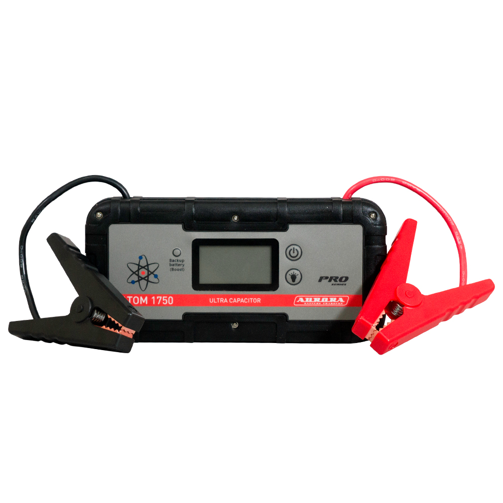 Конденсаторное пусковое устройство АТОМ 1750 для профессионального использования. ATOM 1750 ULTRA CAPACITOR – первое конденсаторное пусковое устройство AURORA. В качестве источника для запуска двигателя устройство использует энергию пяти ультра-конденсаторов ёмкостью 350Ф каждый. Мощности устройства хватит для запуска бензиновых двигателей объёмом до 5л и для запуска дизельных моторов до 2.0л. АТОМ 1750 - не подходит для запуска дизельных двигателей с функцией предпрогрева свечей накаливания. Для таких машин рекомендуем использовать аккумуляторные модели ATOM.