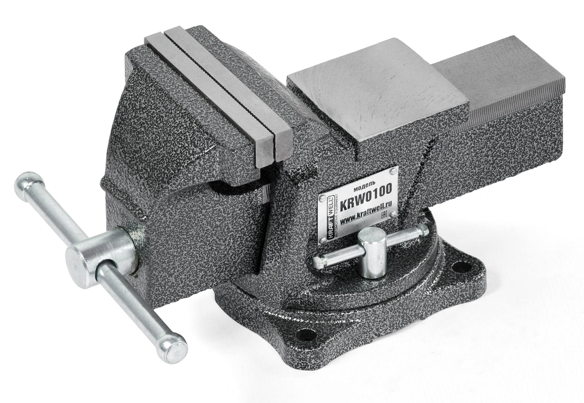 —KraftWell KRW0100 Тиски слесарные вращающиеся 100 мм