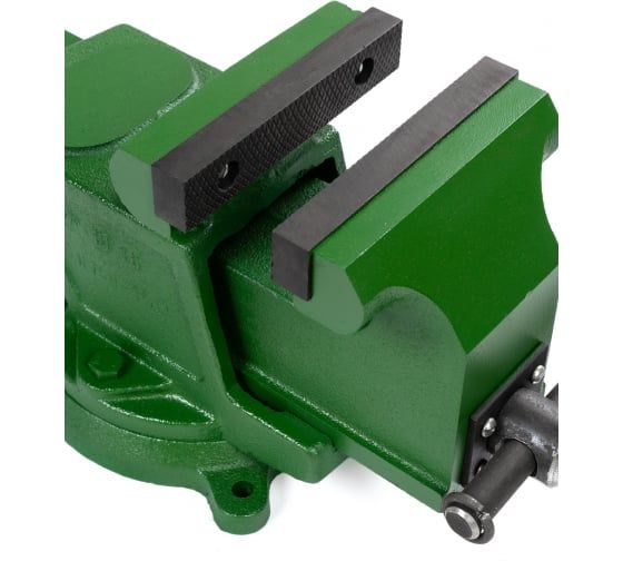 Чугунный корпус и губки из высококачественной стали обеспечивают прочность и долговечность конструкции тисков.