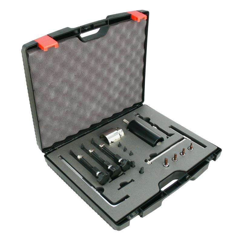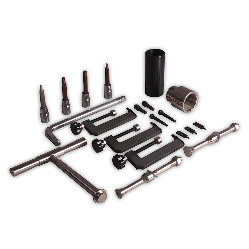 Набор специальных инструментов может быть использован для ремонта насосов высокого давления дизельных двигателей с системой Common Rail, таких производителей как Bosch и Denso. В набор входит инструмент для замены манжетных уплотнений ТНВД Bosch, струбцины для установки толкателей ТНВД, а также ряд других специнструментов для ремонта ТНВД. Набор используется для ремонта насосов Bosch CP1, CP3, а также Denso EDC U2.