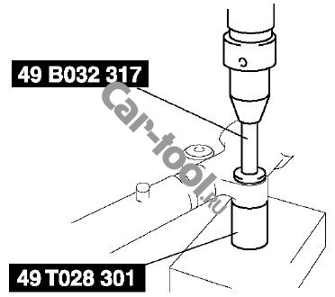 - Назначение инструмента Mazda: замена втулки крепления рейки (приспособление используется в сочетании с инструментом 49 T028 301)