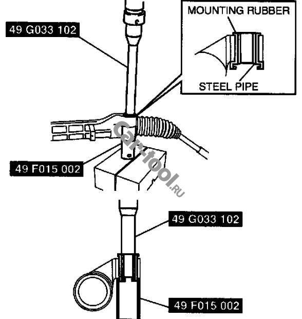 Оправка для монтажа / демонтажа втулок рулевой рейки MAZDA При замене втулок крепления корпуса рулевой рейки к кузова используется специальное приспособление, которое является полным аналогом инструмента MAZDA 49 F015 002. Приспособление используется совместно с приспособлением 49 G033 102. Для успешной замены втулок с помощью данных приспособлений потребуется пресс. - Оригинальный номер приспособления MAZDA: 49 F015 002 - Применяемость оправки: модели Mazda3 и Mazda5