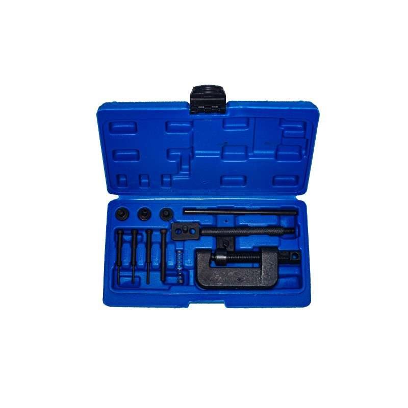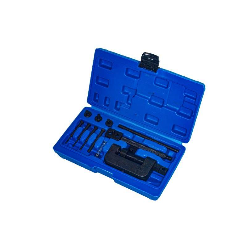 Использование данного приспособления значительно упрощает процедуру замены цепей мотоциклов и другой техники с цепным приводом на колесо.