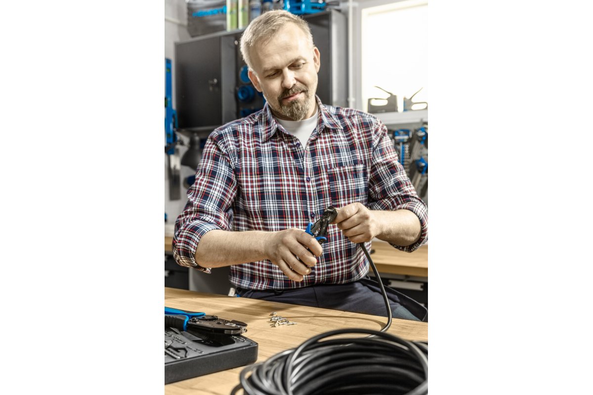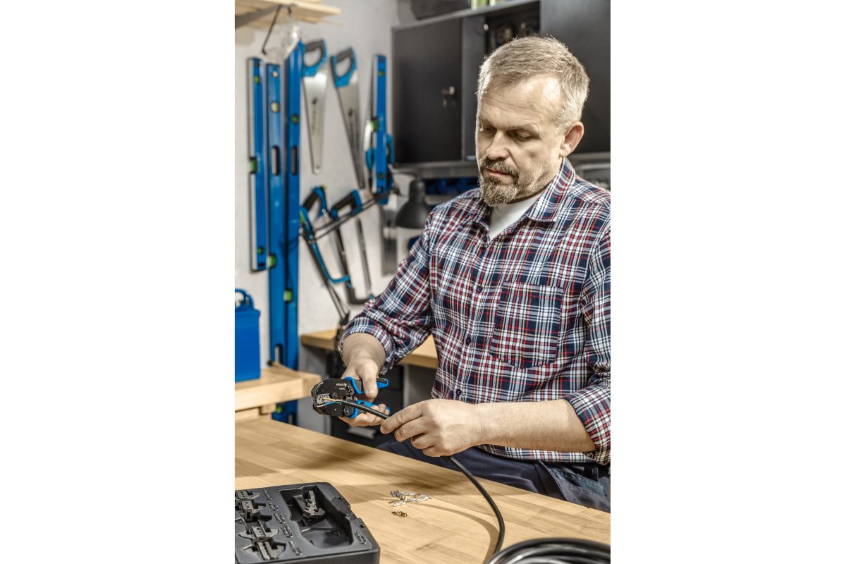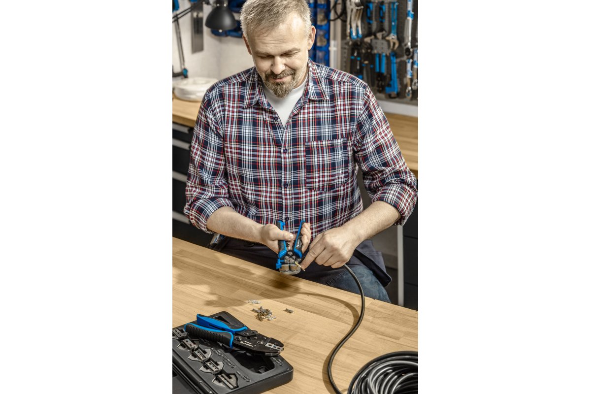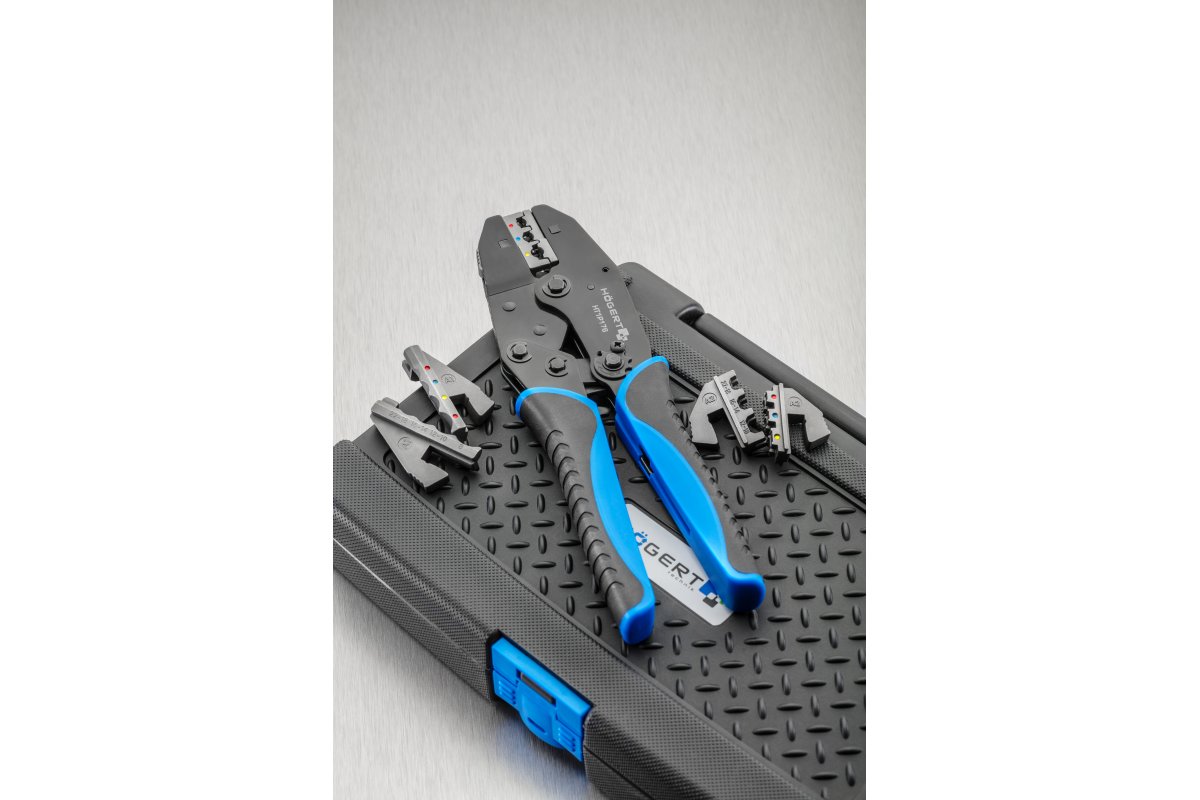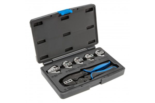Обжимные клещи со сменными губками. Набор из 6 губками. Система маркировки облегчает правильную сборку губок. используются в автомеханике, телекоммуникациях, электронике и других сборочных работах – возможность любого выбора обжимных матриц позволяет адаптировать инструмент к индивидуальным потребностям.