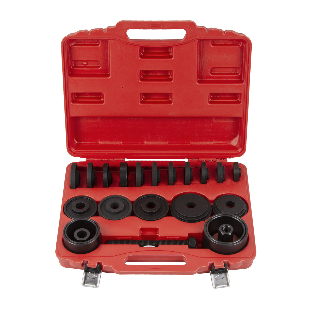 • Универсальность: 13 оправок-шайб и 4 цилиндрические оправки под широкий диапазон размеров обеспечивают совместимость с большинством легковых авто с передним приводом (Toyota, Honda, Ford, VW, Opel и др.) и малыми грузовиками.