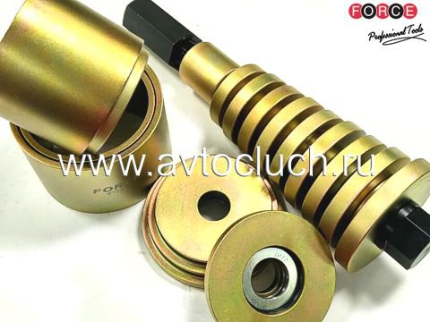 Набор для замены подшипников ступицы 9Т0311 FORCE. Применим к автомобилям: BENZ, BMW, TOYOTA, WV, FORD, VOLVO. Состоит: 10 надставок для подшипников: 87, 79, 74, 72, 67, 64, 62, 60, 55, 38 мм; силовой болт длинной 290 мм и диаметром 22 мм, с гайкой; 2 надставки с подшипником для создания 4 тупиковых чашек размером: 69, 81, 77, 92 мм.