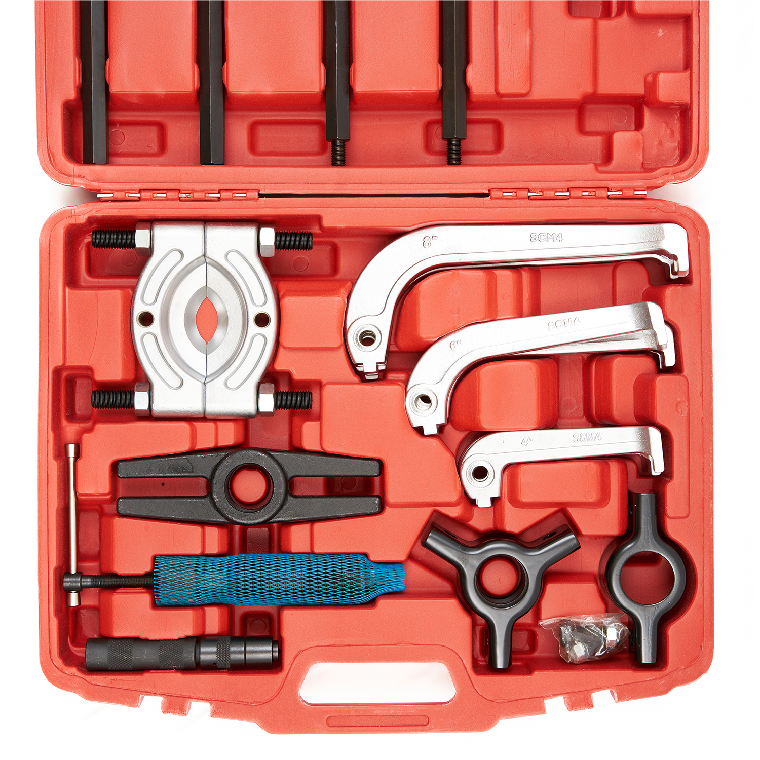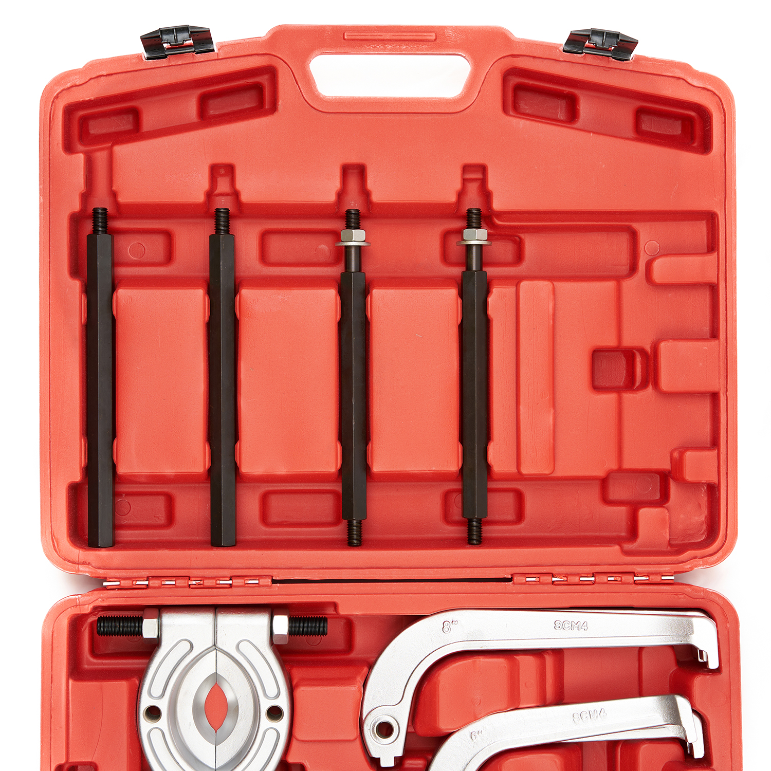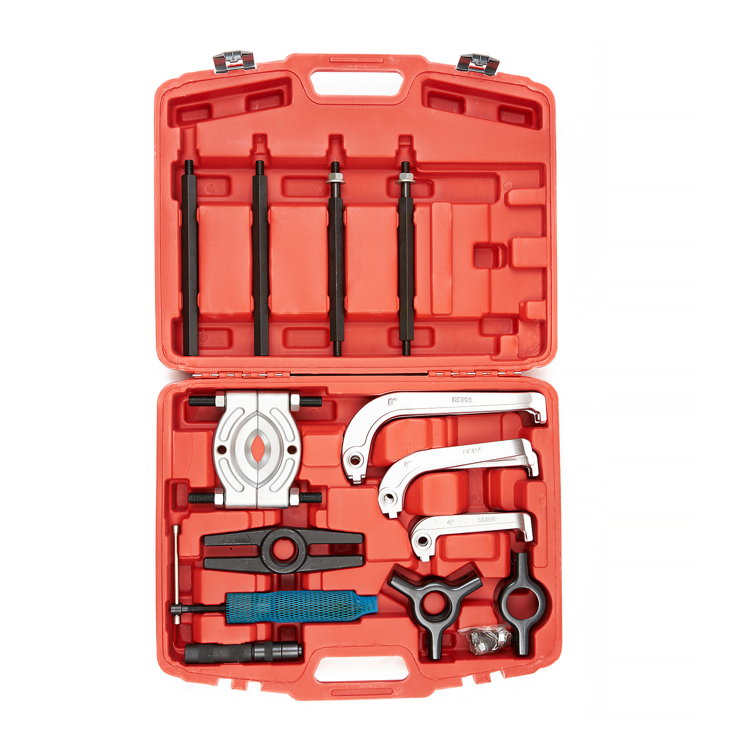 Съемник гидравлический с сепаратором ST011 часто применяется в автосервисах, на СТО и в др. местах, где есть необходимость съема нагруженных деталей транспорта, находящихся на расстоянии до 375 мм от опорной поверхности. Размер деталей находится в диапазоне от 75 до 105 мм. Захваты повышенной твердости (HRC 42-45) обеспечивают приспособлению долгий срок эксплуатации и низкий уровень износа. Детали тянущейся части из углеродистой стали обеспечат его отличную работоспособность. Съемник поставляется в удобном пластиковом чемодане с ручкой, который занимает мало места и прост в транспортировке.