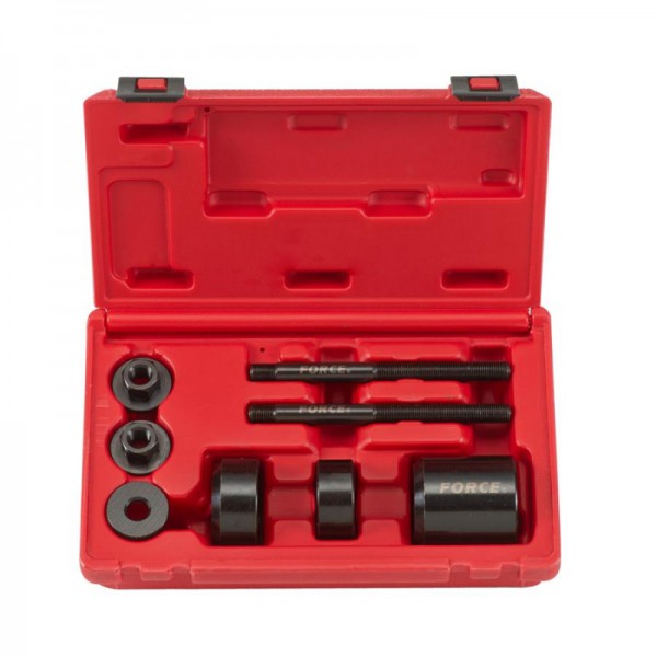 Набор съемников сален-блоков VW, AUDI модели 908T7 от бренда Force предназначен для специализированного использования при работе с сайлентблоками в автомобилях марок Volkswagen и Audi. Инструмент разработан с учётом особенностей конструкции подвески этих моделей и обеспечивает надёжное и безопасное извлечение сален-блоков без повреждения деталей. Комплект подходит для применения в условиях СТО и автосервисов, где требуется точность и воспроизводимость результата.