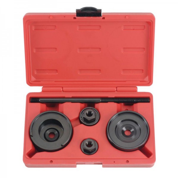 Набор 905T4 от бренда Force предназначен для снятия и установки сален-блоков задней балки автомобилей VW и AUDI. Комплект включает 5 специализированных приспособлений, разработанных для безопасной и корректной работы с сайлентблоками без повреждения деталей подвески. Инструмент подходит для использования в условиях СТО и при индивидуальном техническом обслуживании.