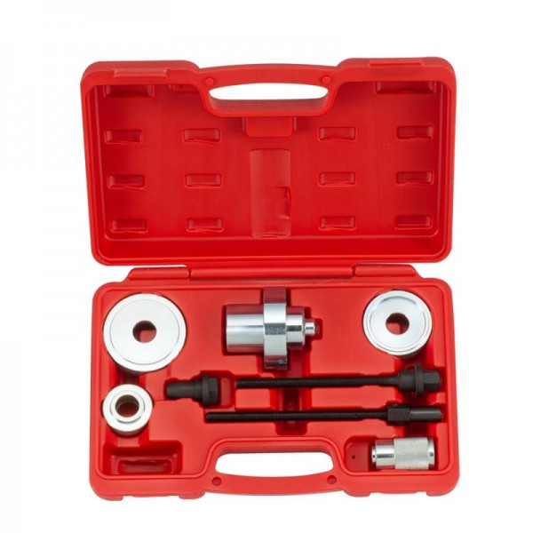 Набор 907T6 предназначен для снятия и установки саленблоков переднего рычага без демонтажа последнего с автомобиля. Используется на автомобилях марки VW. Разработан специально для упрощения процедуры обслуживания подвески в условиях СТО и гаража, исключая необходимость полной разборки передней подвески.