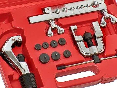 Комплект приспособлений для резки и развальцовки трубок из меди, латуни и тонкостенных алюминиевых трубок. Набор КА-6371КА подходит применим для трубок: 4.75; 5; 6; 8; 10; 1/4"; 1/2".