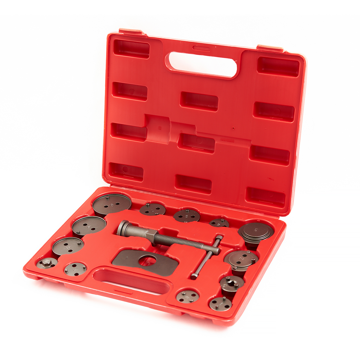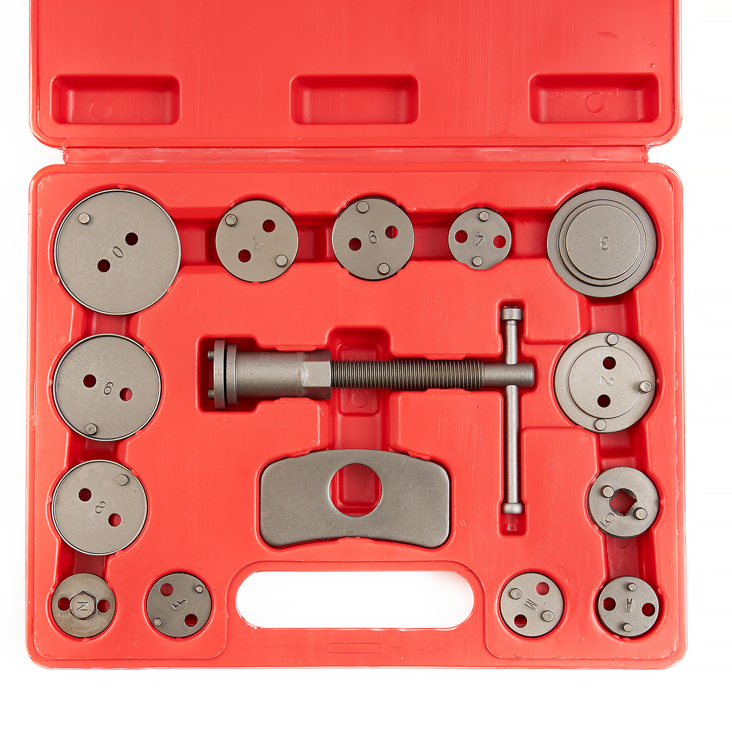 ST064 Набор инструментов для сведения тормозных цилиндров, 15 предметов<br />Данное приспособление предназначено для выжимания тормозных цилиндров, что значительно упрощает установку тормозных колодок.<br />Подходит для большинства автомобилей, в том числе: Mercedes, BMW, Volkswagen, GM, Audi, Ford, Honda, Subaru, Mazda, Nissan, Mitsubishi, Toyota, Land Rover.