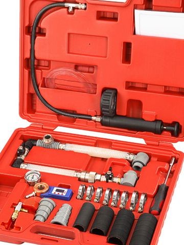 Универсальный комплект сочетает в себе основные тесты, проведенные в системе охлаждения, отсоединив только верхние хомуты: испытательное давление, проверку датчика температуры, водяной насос, термостат, состояние охлаждающего вентилятора.