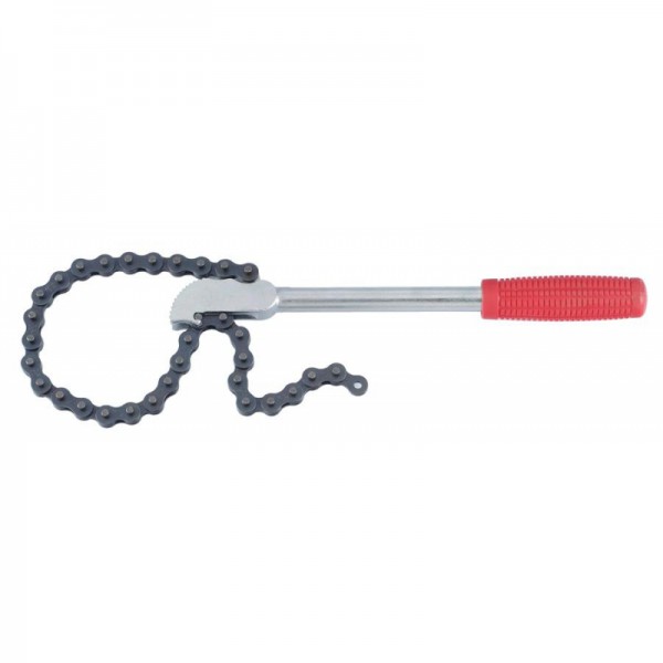 Съёмник масляного фильтра с цепью и рычагом Force 61914 предназначен для удобного и эффективного демонтажа масляных фильтров в автомобильных и промышленных системах смазки. Инструмент оснащён цепью длиной 20 дюймов (500 мм), обеспечивающей надёжный захват фильтра, и рычагом длиной 12 дюймов (300 мм), позволяющим приложить необходимое усилие при снятии закреплённых элементов.