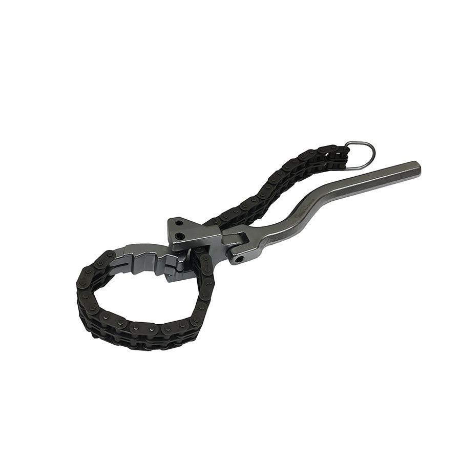 Съемник масляного фильтра OFW-105 от бренда HANS предназначен для удобного и надежного снятия масляных фильтров диаметром от 60 до 105 мм. Инструмент оснащён цепным механизмом с поворотной ручкой, что обеспечивает хорошее сцепление с фильтром и удобство применения даже в труднодоступных местах.