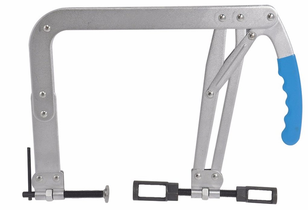 Фиксация струбцины в необходимом положении позволяет освободить руки для удобства демонтажа стопорных сухарей клапана.