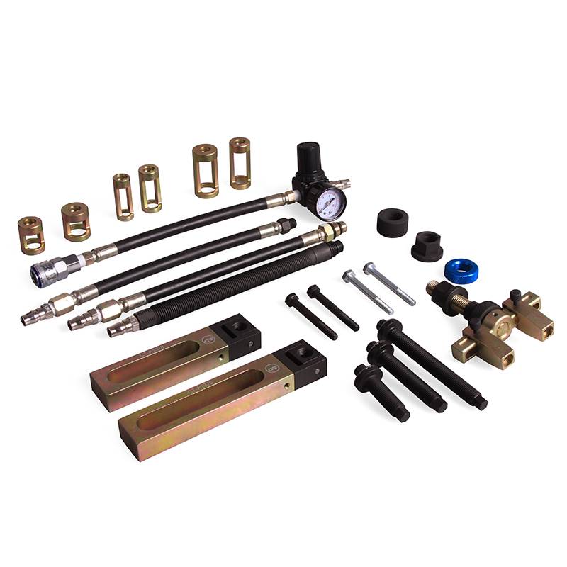 - Назначение: набор используется для замены маслосъемных колпачков, при этом нет необходимости демонтажа ГБЦ с блока двигателя. Для работы с набором требуется подвод сжатого воздуха рабочим давление не более 8 бар. Набор оснащен регулятором давления.