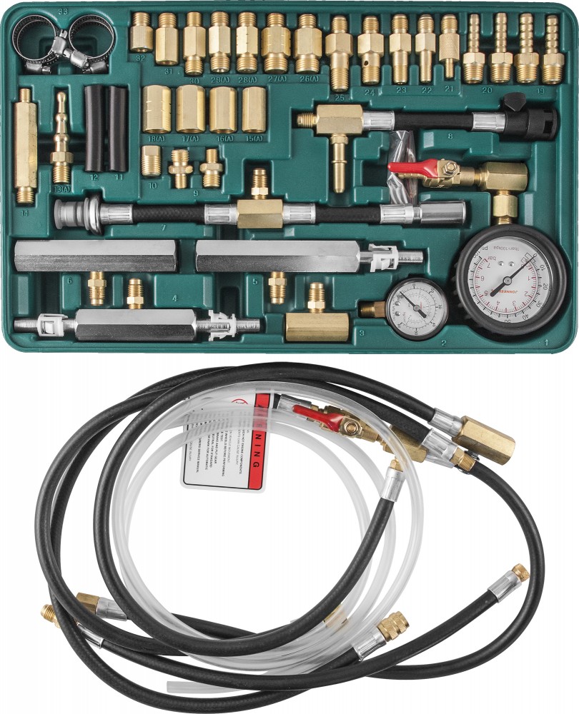 Набор применяется для проведения диагностики топливных систем впрыска бензиновых двигателей и определения неисправностей методом измерения давления в участках магистралей и устройств системы питания. Инструмент рекомендован к использованию при тестировании систем питания автомобилей: ACURA, HONDA, MAZDA, SUZUKI, TOYOTA, AUDI, MERCEDES, PEUGEOT, PORSCHE, VW, VOLVO и других, оборудованных системами питания типа: BOSCH C.I.S/C.I.S.E и аналогичных по принципу действия, механическими системами впрыска (K-JETRONIC, KE-JETRONIC), системами впрыска с электронным управлением (L, LH, LE–JETRONIC, GM-TBI и др.), «Моновпрыск» (MONOTRONIC и др.).