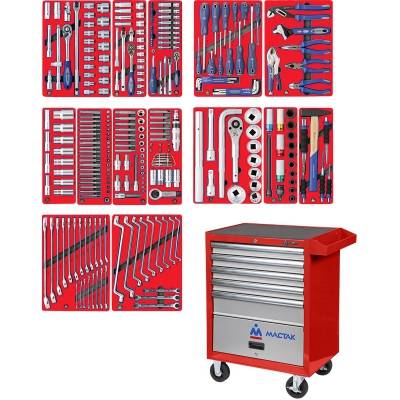 Набор инструментов торговой марки МАСТАК состоит из 299-х предметов, и включает в себя 14 ложементов. Предназначен для организации рабочего места в любом производственном помещении, станции технического обслуживания или авторемонтной мастерской. Набор размещается в тележке МАСТАК 522-05581R.