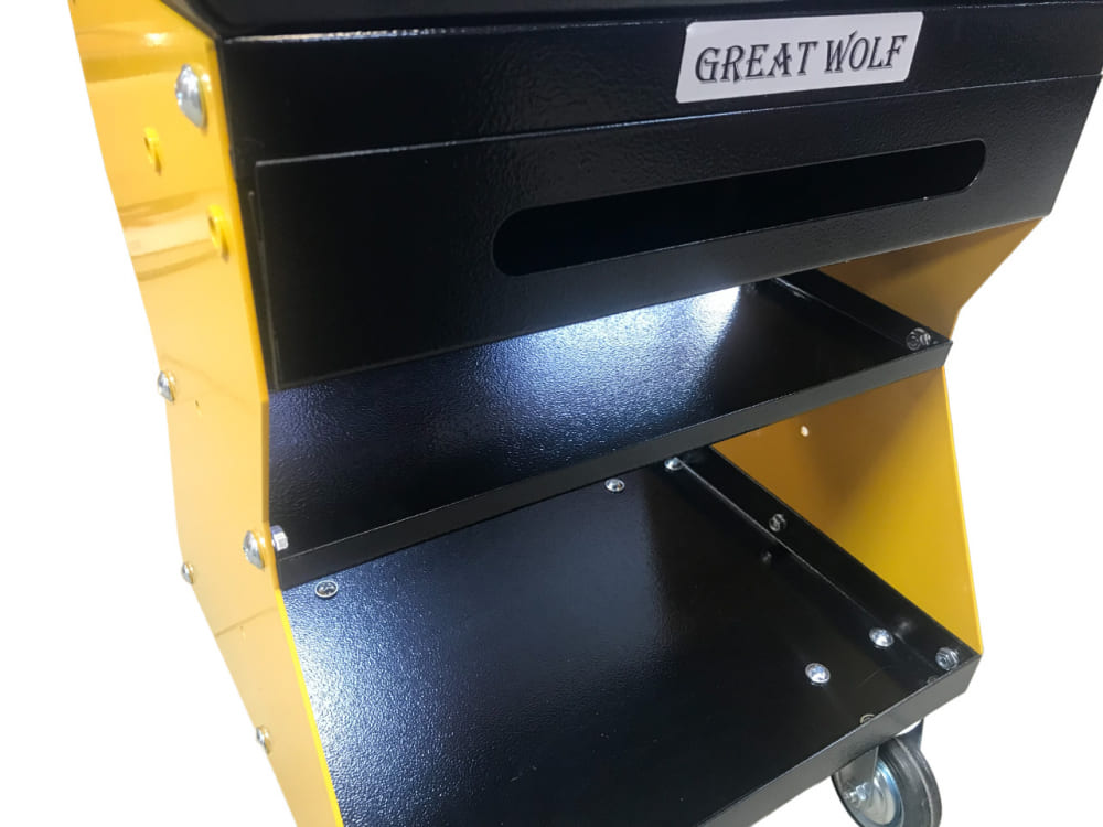 Имеет 2 полки и выдвижной ящик для инструментов, а также есть возможность для установки дополнительных полок или кронштейнов по бокам.