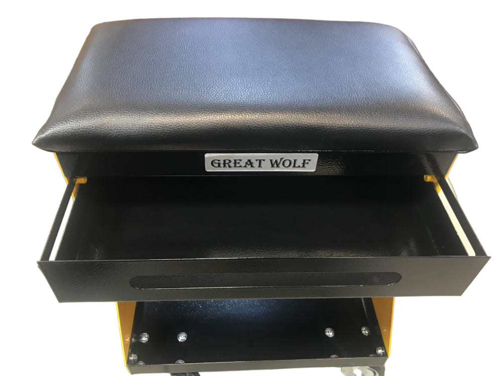 Передвижное сиденье на колесах Great Wolf GWT-Y1 предназначено для ремонтных работ. Цвет - желтый.