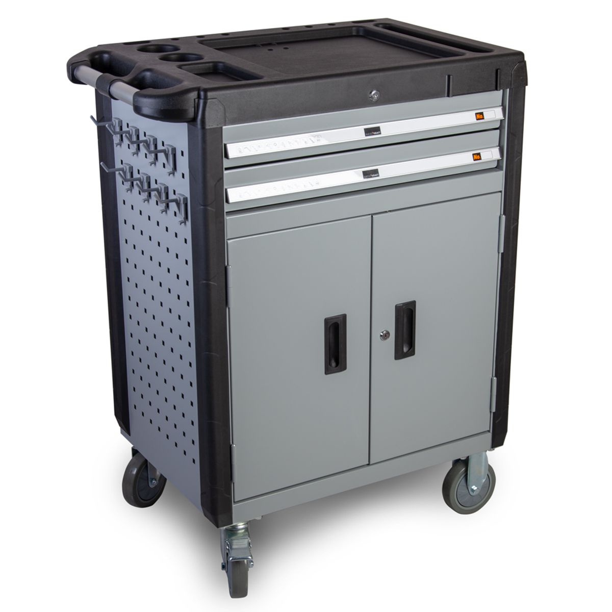 Тележка инструментальная WDK-703T от бренда WiederKraft предназначена для хранения и транспортировки инструментов. В комплектацию входит набор инструмента. Модель оснащена двумя ящиками и отсеком с полкой, что обеспечивает удобную организацию рабочего пространства и доступ к необходимым приспособлениям.