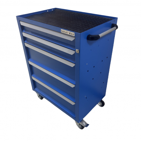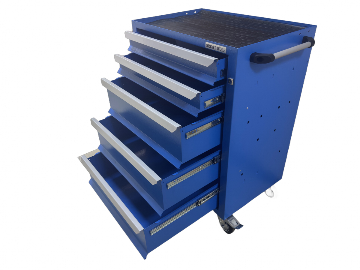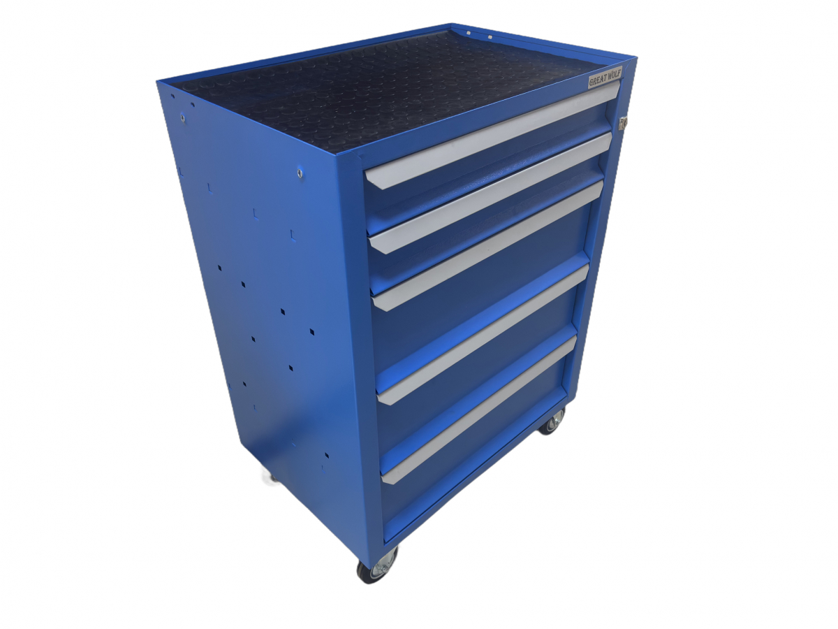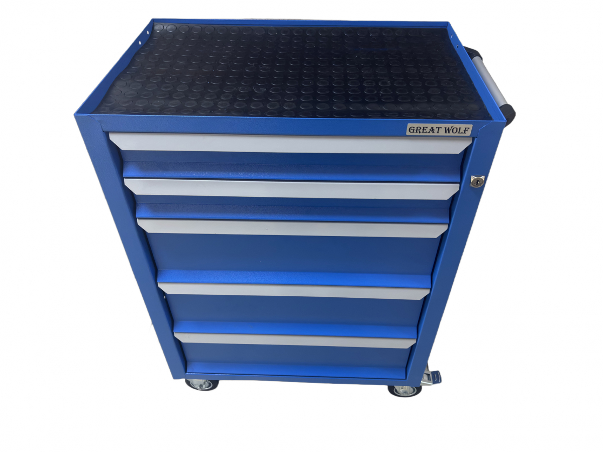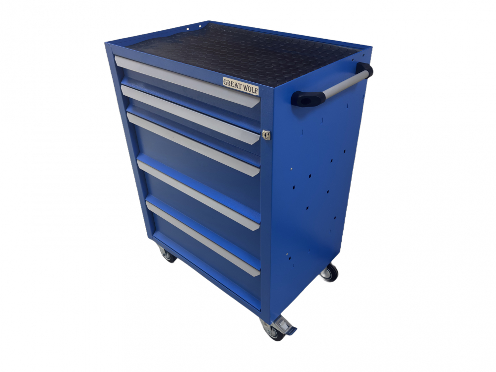Инструментальная тележка Great Wolf GWT-K5B предназначена для удобного хранения и транспортировки инструмента по ремонтной зоне. Увеличенные колеса с блокирующим механизмом надежно фиксируют тележку на месте. Тележка закрывается на ключ. 3 нижних ящика глубиной 155мм и 2 ящика глубиной 75мм позволяют хранить как ложементы, так и крупногабаритный инструмент.