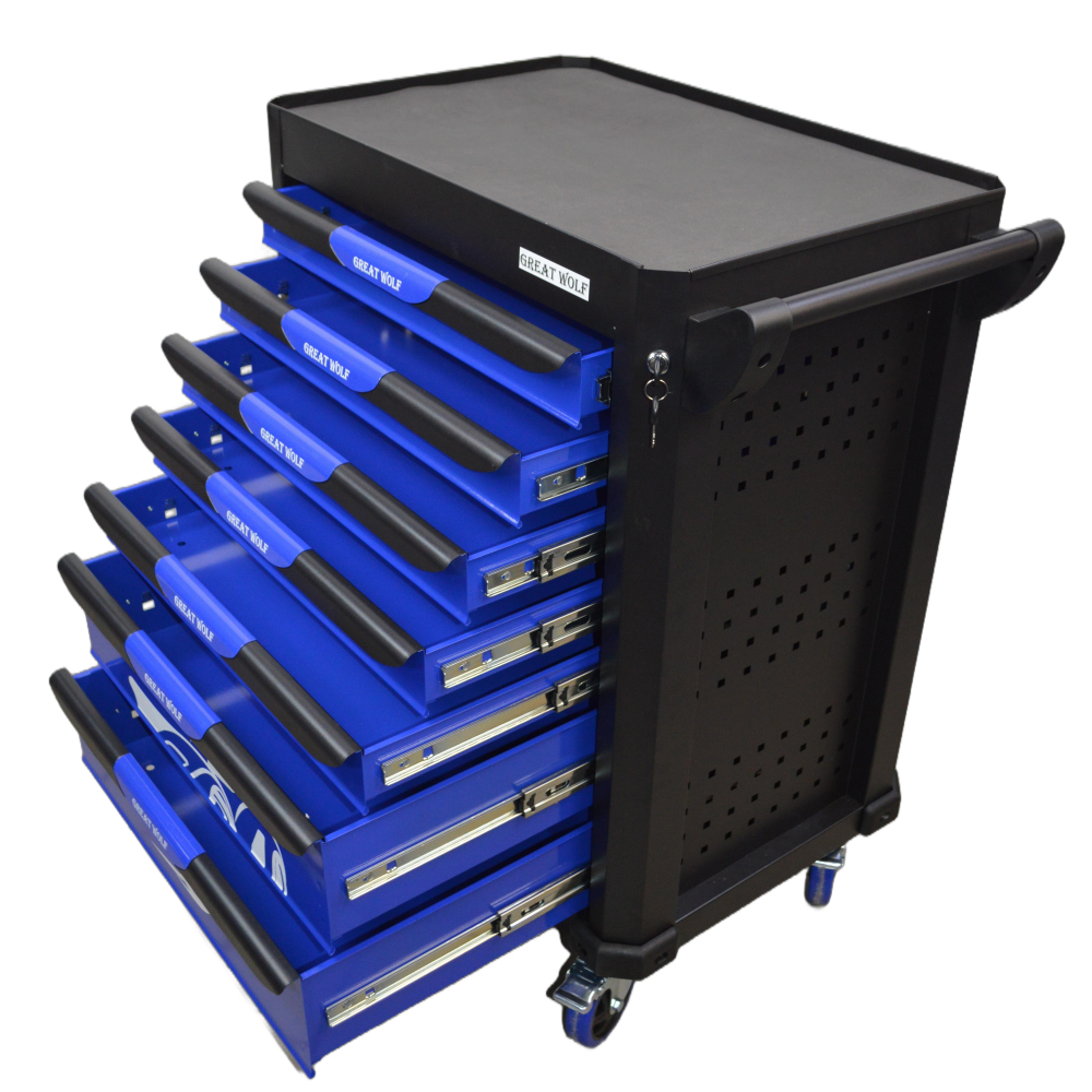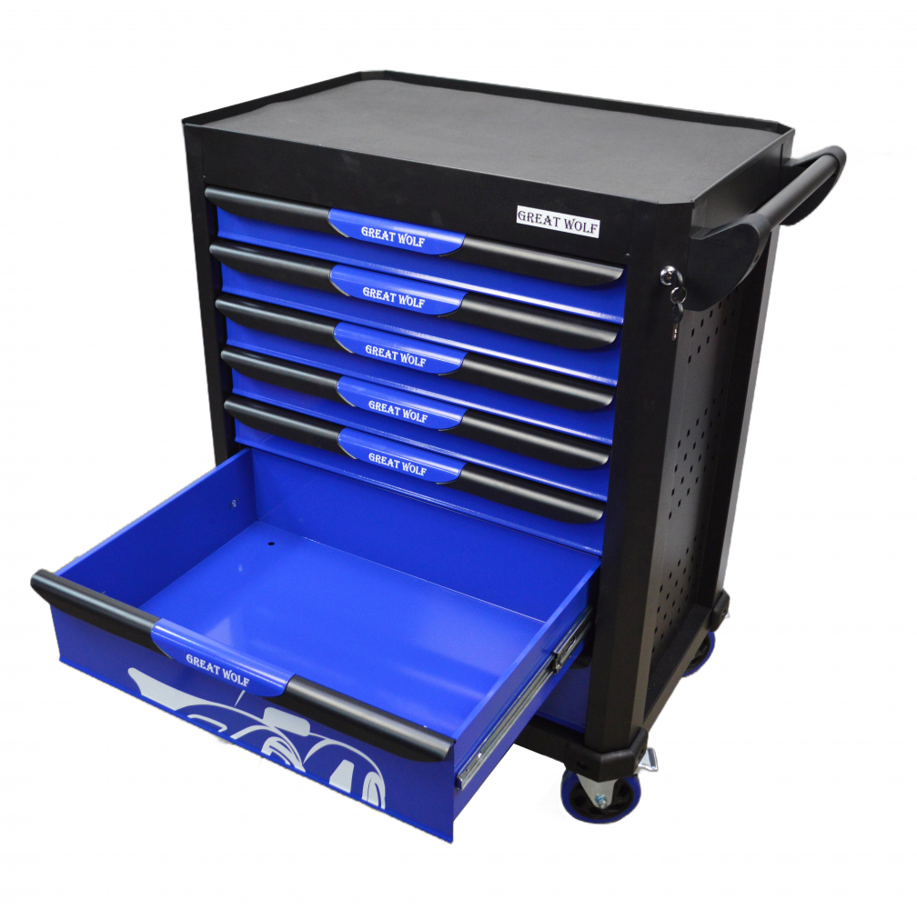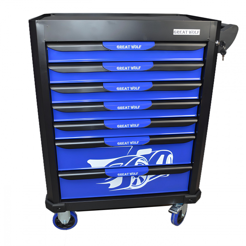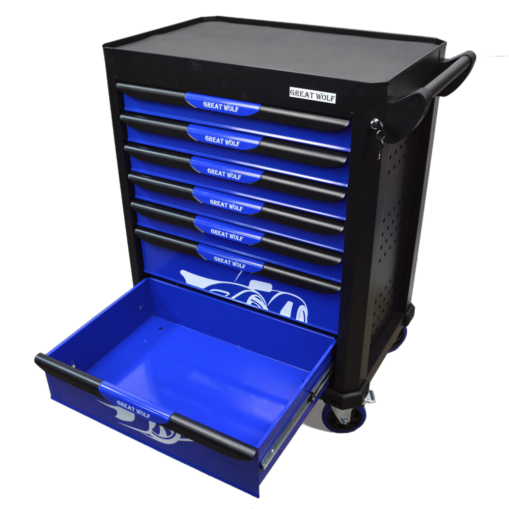 Инструментальная тележка Great Wolf GW-7ST Blue с 7 ящиками предназначена для удобного хранения и транспортировки инструмента по ремонтной зоне.